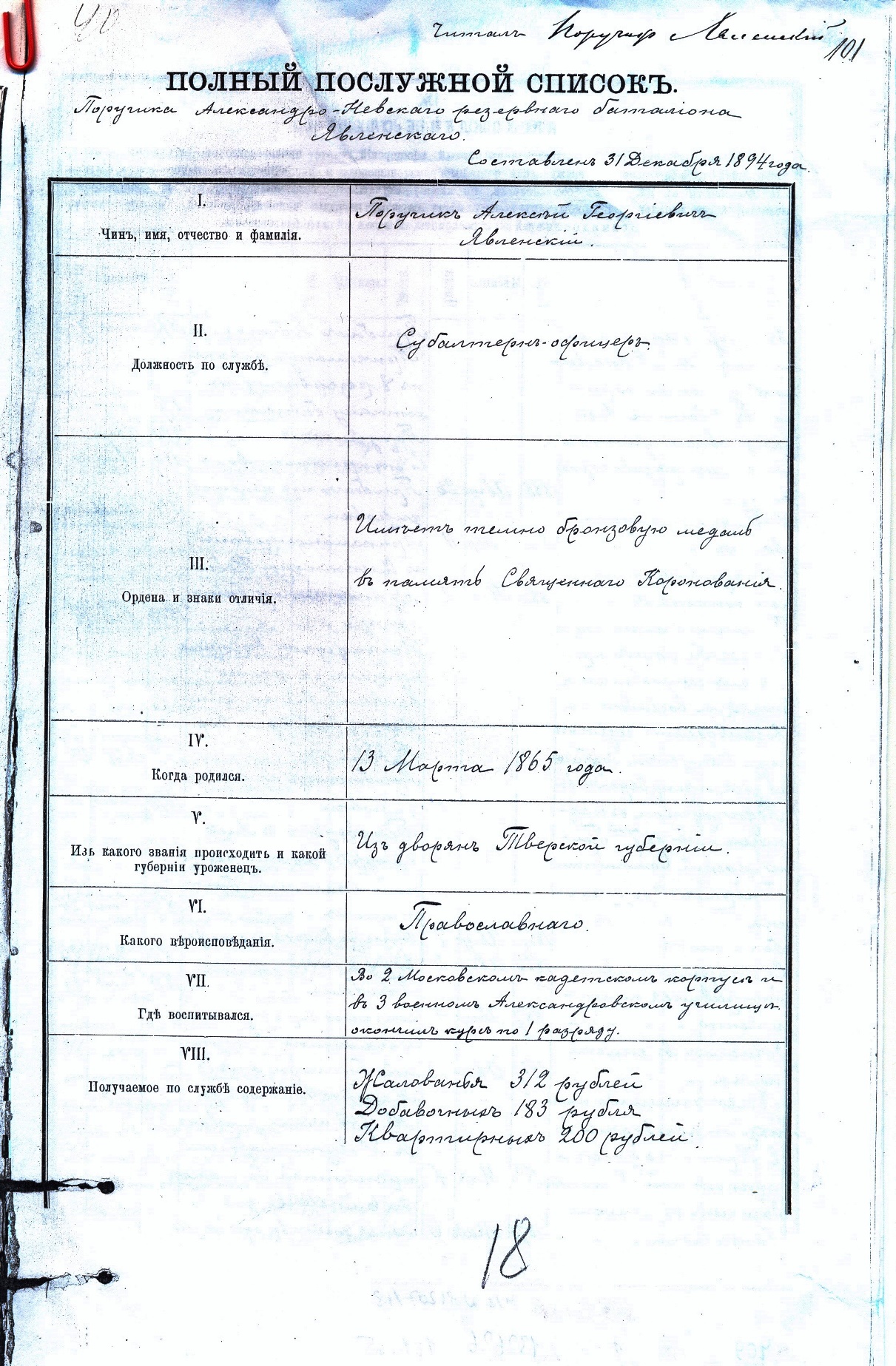 (*) Дата рождения указана по данным Послужного списка А. Г. Явленского. В западноевропейской литературе датой рождения А. Г. Явленского принято считать 26 марта 1864 года – эту дату он указал при регистрации в Мюнхене в 1896 году и далее указывал во всех документах в Европе.